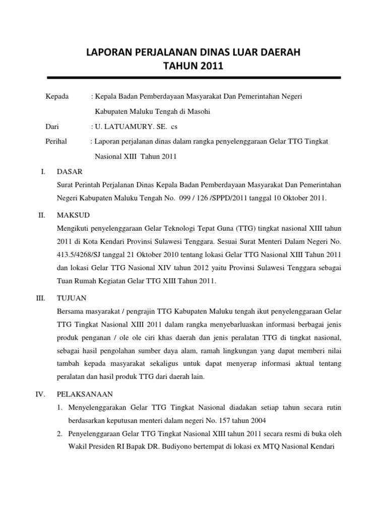 Laporan Perjalanan Dinas Luar Daerah Pdf
